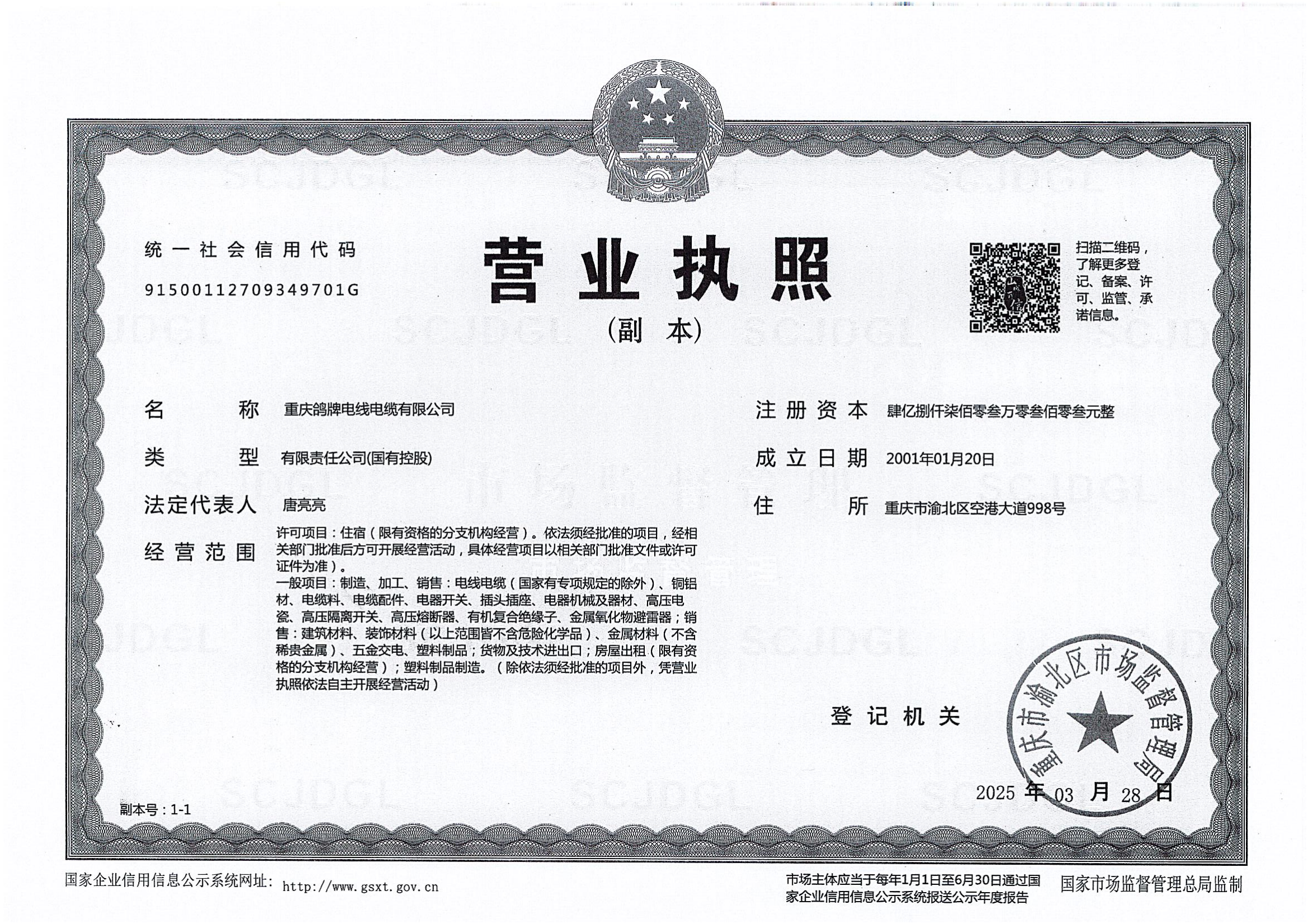 重慶鴿牌電線電纜有限公司,隸屬于港交所上市的重慶機電股份有限公司,系全國電線電纜行業(yè)重點國有控股企業(yè)。公司始建于1956年,60多年專注于電線、電纜、銅型材、高壓電瓷、塑膠管材的研發(fā)和生產(chǎn),一直致力于打造水電一體化產(chǎn)品結(jié)構(gòu),為國際國內(nèi)航天航空、軌道交通、發(fā)電機組、輸配電工程配套及家裝系列提供了安全、節(jié)能、環(huán)保產(chǎn)品和優(yōu)質(zhì)服務(wù)。